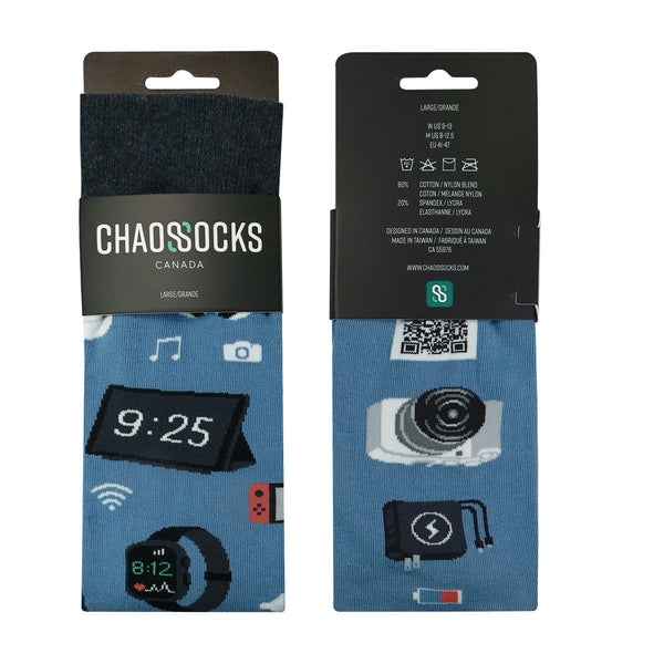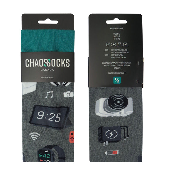 Step into the digital age with Chaossocks Multi Media Socks, where cutting-edge tech imagery meets cozy comfort. These playful socks feature eye-catching digital and tech-inspired designs that celebrate your love for all things connected. Perfect for the gadget enthusiast who refuses to sacrifice style for substance, they transform everyday moments into a fun fashion statement. Whether you're coding, gaming, or just living your best tech-savvy life, these socks keep your feet entertained and your vibe unmistakably modern.