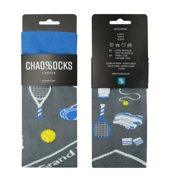 Serve up style on the court with Chaossocks Tennis. These vibrant socks feature a dynamic tennis-inspired design that celebrates the game you love. Crafted for comfort during intense matches or casual wear, they keep your feet feeling fresh whether you're chasing aces or cheering from the sidelines. Perfect for tennis enthusiasts who refuse to compromise on personality. Game, set, sock!